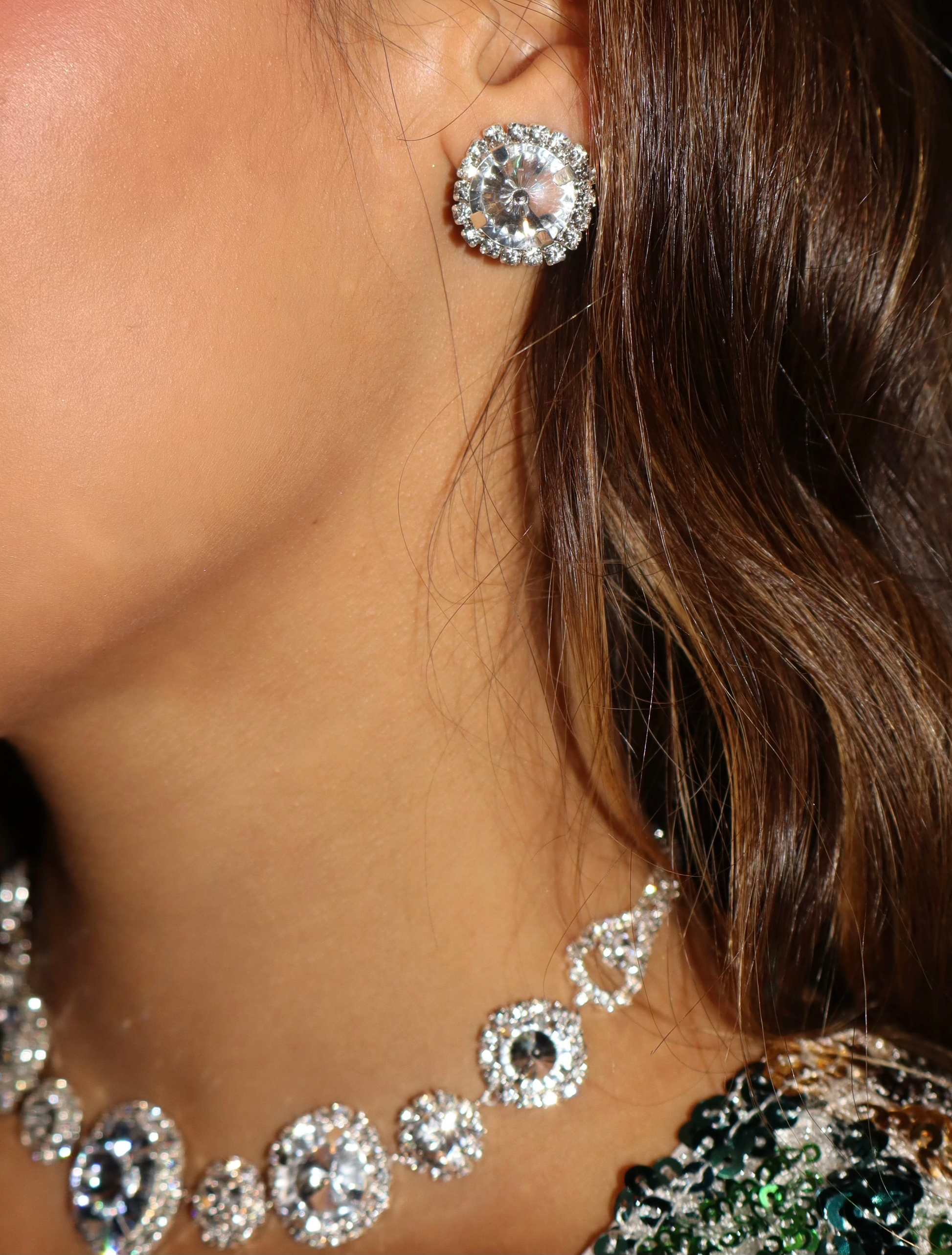 Beautiful silver diamond earrings and choker diamond necklace.